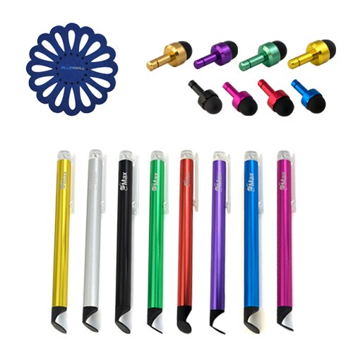 - 8xUniversal Stylus with Flat Tip ( Black / Red / Purple / Blue / Silver / Hot Pink / Yellow / Green )